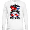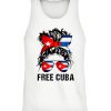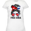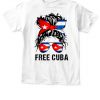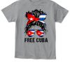 Messy Hair Woman Bun Free Cuba Flag Sos Cuban T-Shirt