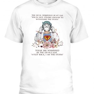 THE DEVIL WHISPERED IN MY EAR YOU’RE NOT STRONG ENOUGH TO WITHSTAND THE STORM NURSE T-SHIRT