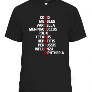 Vaccinated – Covid Measles Varicella Menigococcus Polio Tetanus Hepatitis Pertussis Influenza Diphtheria T-Shirt