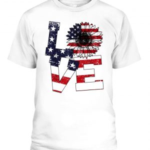 4TH OF JULY LOVE SUNFLOWER PATRIOTIC AMERICAN FLAG T-SHIRT