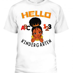 KIDS HELLO KINDERGARTEN ABC BROWN PRINCESS 123 TODDLER BLACK GIRL T-SHIRT