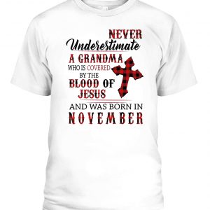 Never underestimate a grandma who is covered by the blood of Jesus and was born in November Shirt