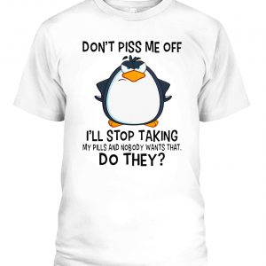 PENGUIN DON’T PISS ME OFF I’LL STOP TAKING MY PILLS AND NOBODY WANTS THAT SHIRT