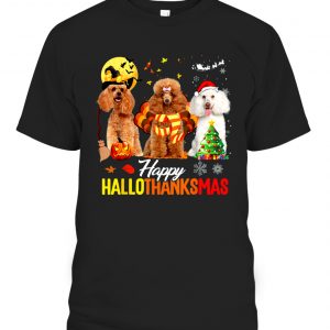 Poodle Dog Happy Hallothanksmas Halloween Thanksgiving Xmas T-Shirt
