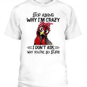ROOSTER STOP ASKING WHY I’M CRAZY I DON’T ASK WHY YOU’RE SO STUPID SHIRT