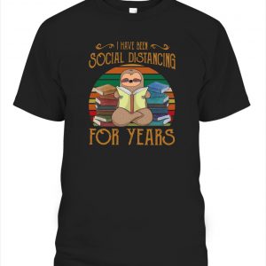 SLOTH READ BOOK I HAVE BEEN SOCIAL DISTANCING FOR YEARS VINTAGE T-SHIRT
