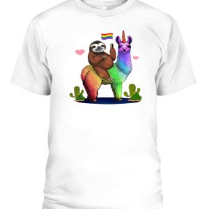 SLOTH RIDING LLAMA LGBT GAY LESBIAN PRIDE T-SHIRT